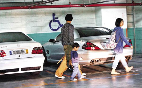 吳奇隆當司機,開賓士跑車載短髮熟女與小男孩在台北市區趴趴走。(專案組攝)