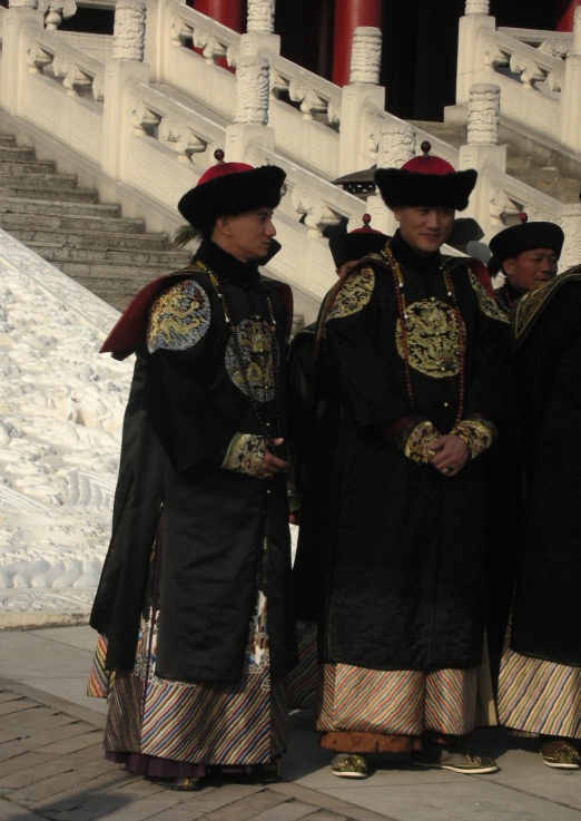 嗯嗯,偶也不喜欢这个发型,总觉得北方的游牧民族前面剃得光光的,难道不冷吗?还是因为天气冷总得带帽子,这样方便呢?还是和宗教信仰或者民族习俗有关呢?真是搞不懂哦,服装的样式还可以接受,尤其是配色方面俺比较喜欢,好象苏麻喇姑就参与了冠服的制定,不知道发型制定有没有她的参与,不过蒙古族,甚至我看日本的古代发型也有剃头的,某人的“庞克头”也就没啥希奇啦,呵呵,虽然好像并不怎么难看,