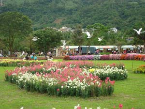 這是礁溪路上的街景,很醒目,上面是關公造型,因為礁溪的特殊代表廟宇-關帝廟就在附近唷,下面是很迷人的薰衣草 ... ...
