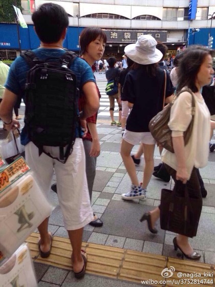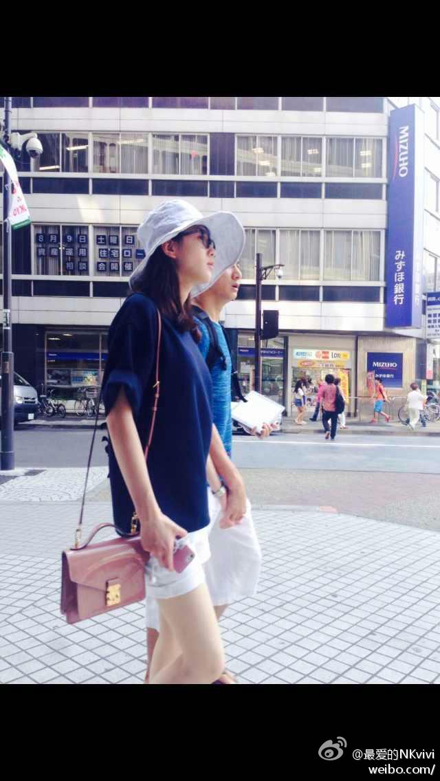 劉詩詩(前)牽著吳奇隆的手悠遊東京街頭。翻攝最爱的NKvivi微博