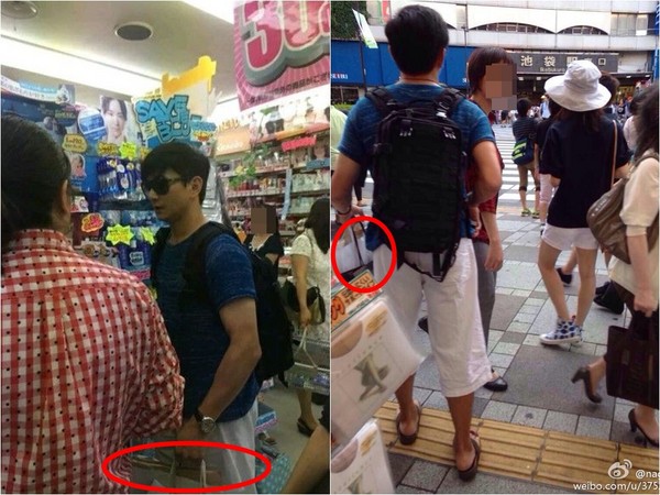 ▲▼吳奇隆和劉詩詩同遊日本被抓包,兩人除了穿情侶裝還在街上十指緊扣,女方到藥妝店血拚完,他還一手包辦了所有「戰利品」。(圖/新浪微博)