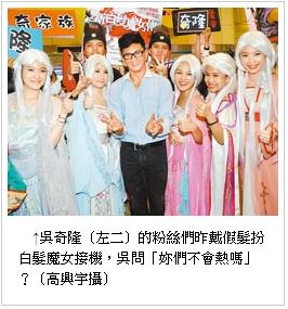 天氣熱,吳奇隆及馬蘇坐在台上汗流挾背為粉絲簽名,工作人員還為兩人搧扇子消暑,因簽名民眾太多,吳奇隆結束後還調皮的趴在桌上睡覺,讓粉絲笑開懷。而現場也有三名辣妹也戴起白髮,熱情的展現力挺吳奇隆製作的片子,也成功吸引民眾目光,成為另一個焦點。